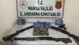 Manisa’da jandarma ekiplerinin düzenlediği operasyonda bir evden ruhsatsız tabanca, üç av tüfeği, tarihi sikkeler ve çok sayıda fişek ele geçirildi.