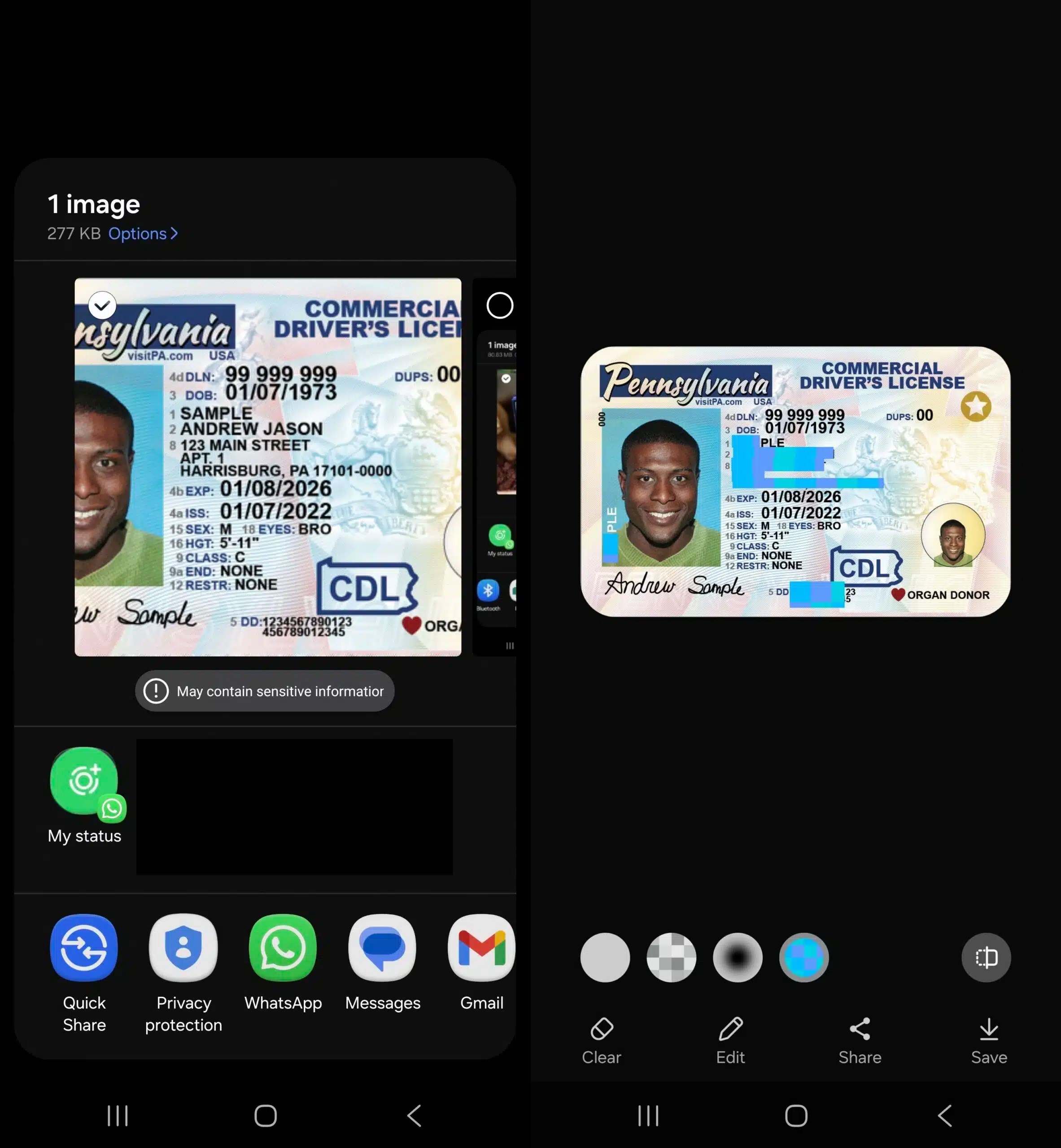 Samsung’un One UI 8.5 güncellemesiyle birlikte kullanıcılara sunacağı Gizlilik Koruması adındaki yeni özellik, paylaşılan fotoğraflardaki hassas bilgileri otomatik olarak algılayacak ve gizleyecek veya düzenleyecek. Örneğin, ehliyet veya pasaport gibi kişisel bilgiler içeren bir belgenin fotoğrafını paylaştığınızda, bu özellik sayesinde istemediğiniz bilgiler otomatik olarak gizlenebilecek.